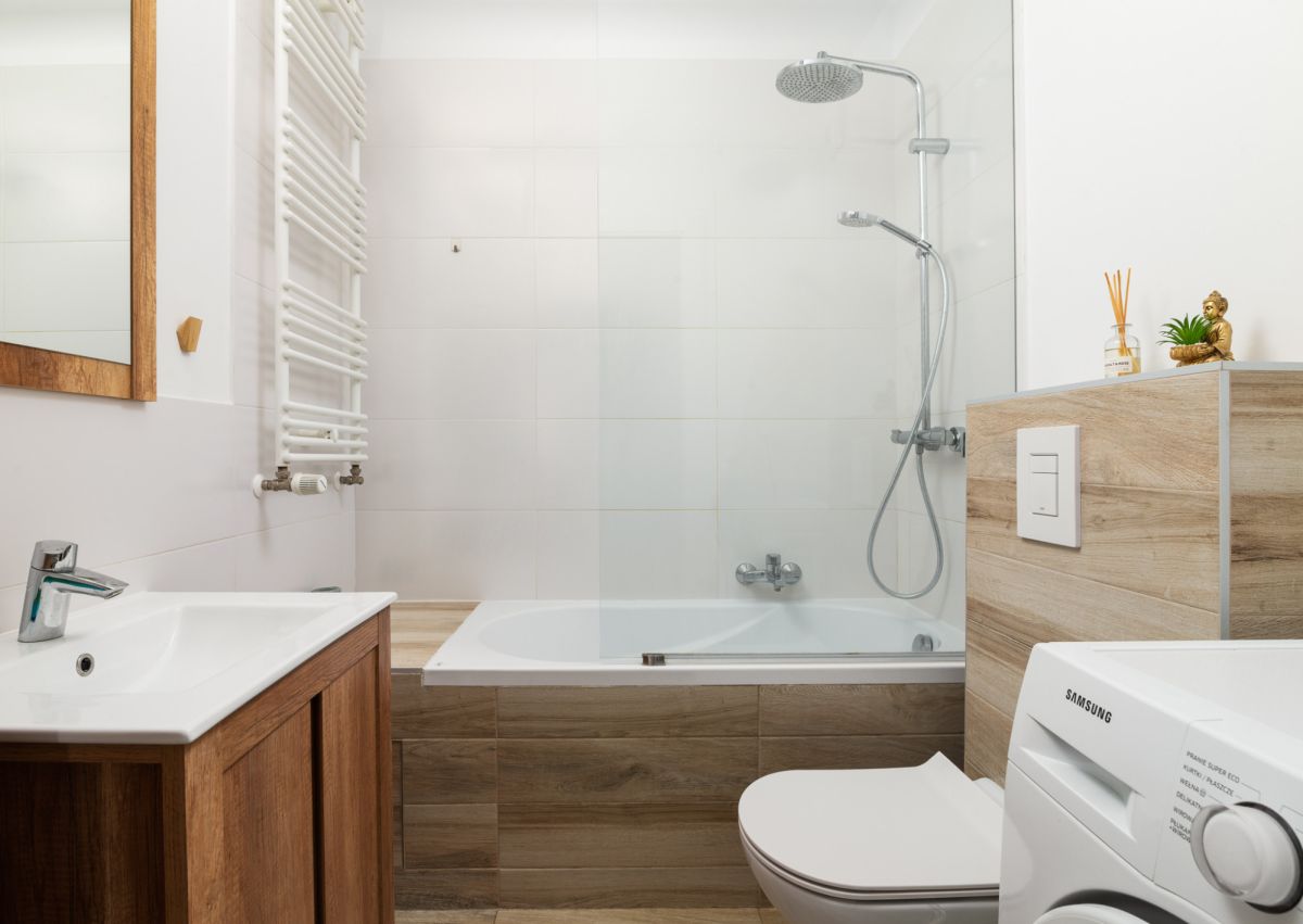 • salon z aneksem kuchennym oraz wyjściem na duży balkon o powierzchni 9m2