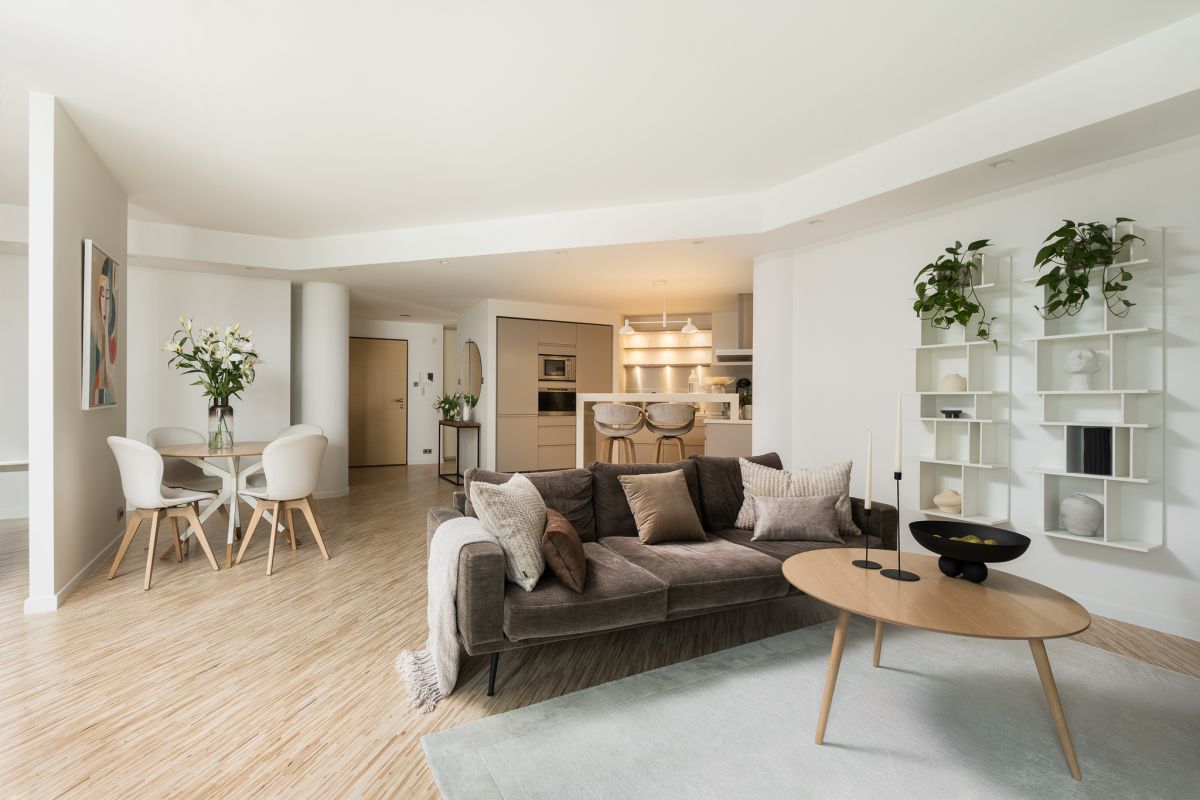 Ten apartament to połączenie dopracowanego designu, naturalnych materiałów, komfortu, światła i zieleni — z wyjątkową lokalizacją w samym centrum Warszawy.