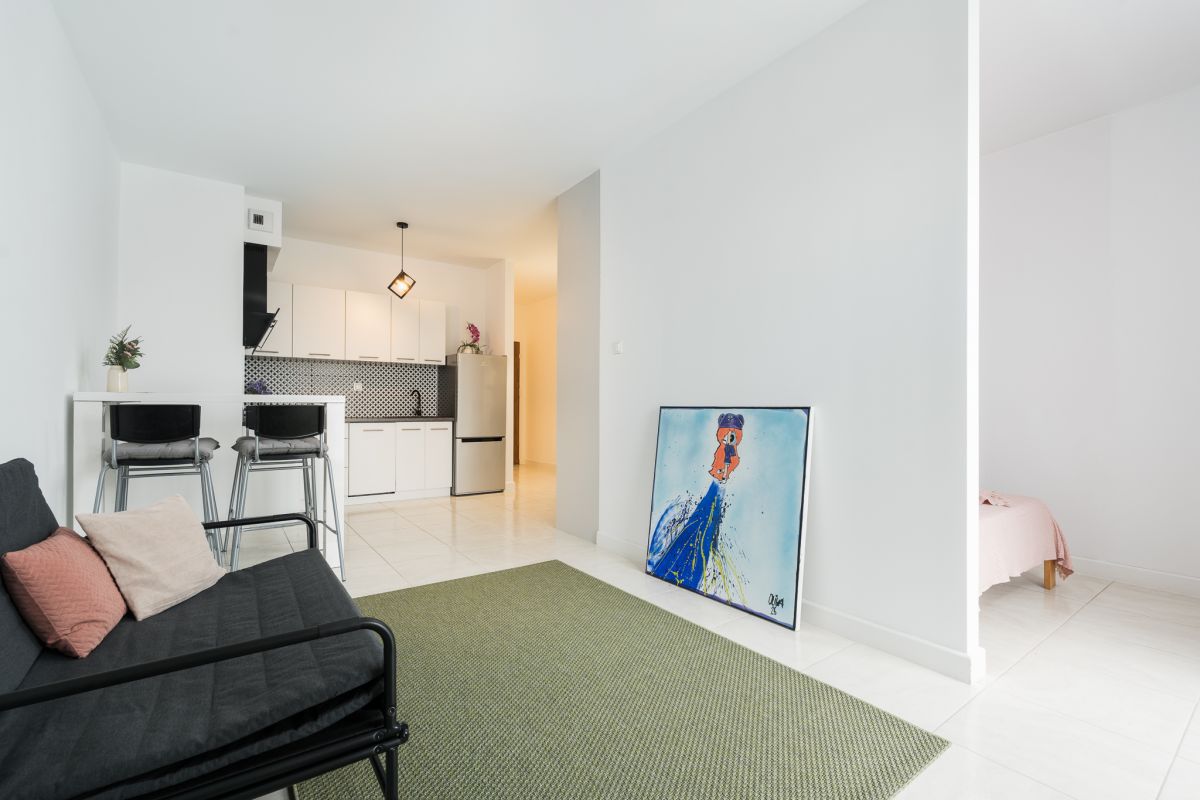 • salon z aneksem kuchennym i wyjściem na duży balkon