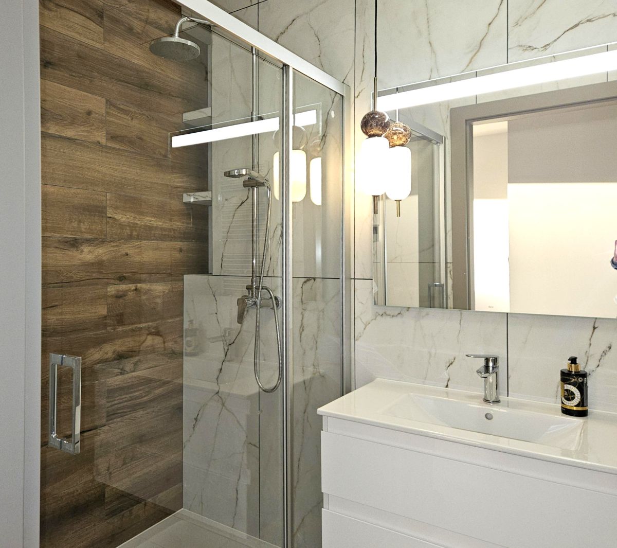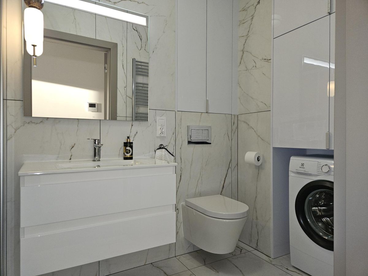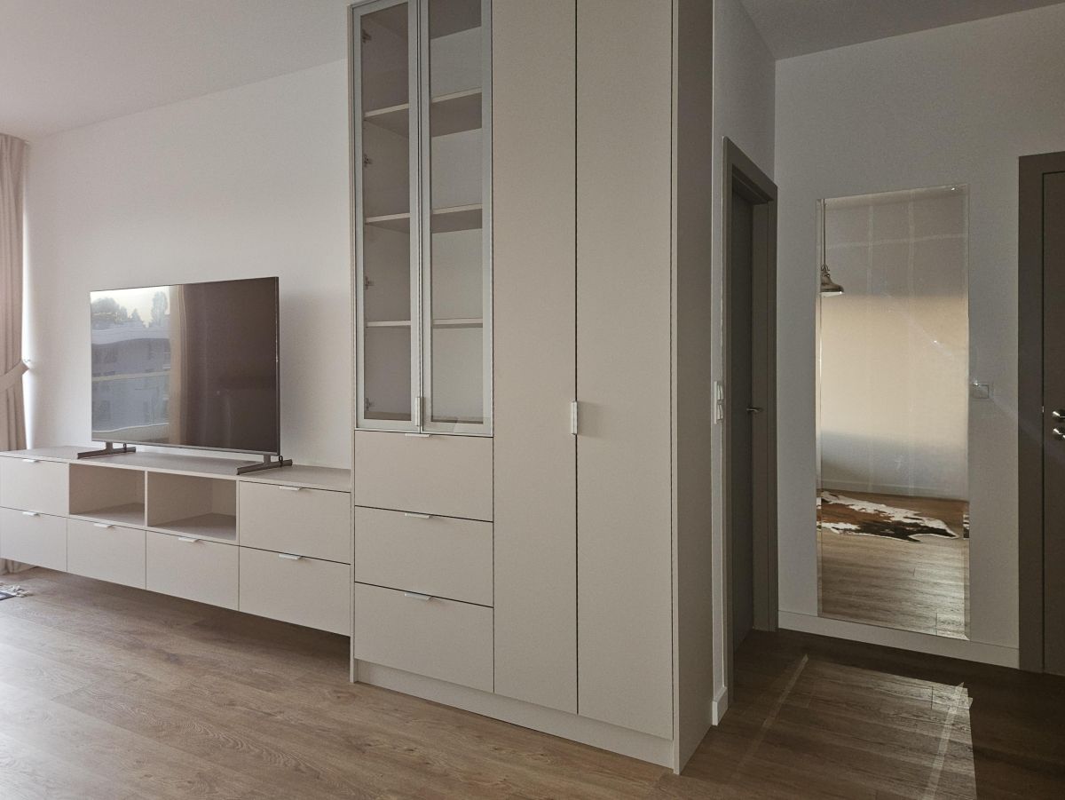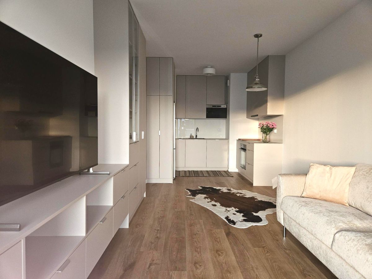 Przestrzeń została zaprojektowana z dbałością o każdy detal i wykończona przy użyciu materiałów najwyższej jakości. Klimatyzowany salon z aneksem kuchennym jest jasny, przestronny i pełen naturalnego światła dzięki panoramicznym oknom, a bezpośrednie wyjście na balkon nadaje wnętrzu dodatkowej funkcjonalności. Nowoczesna, elegancka kuchnia została wyposażona w zabudowę oraz fabrycznie nowy sprzęt AGD, który czeka na swojego pierwszego użytkownika. Przytulna sypialnia również posiada wyjście na balkon, co dodaje uroku i wygody, a stylowa łazienka z wysokiej klasy armaturą została zaprojektowana w ponadczasowym, eleganckim stylu. Umeblowanie zostanie wkrótce uzupełnione o szafki nocne w sypialni oraz stół z krzesłami, który subtelnie oddzieli część kuchenną od strefy dziennej.