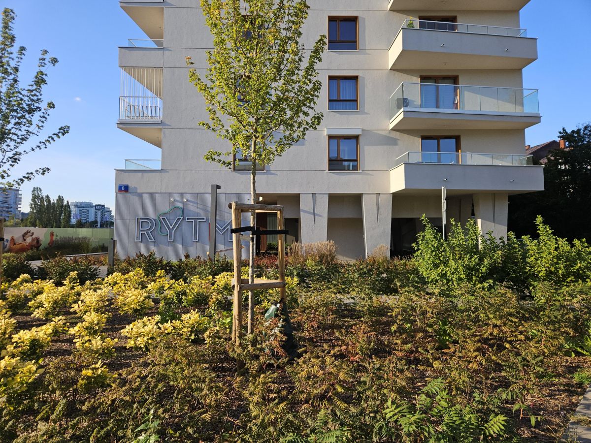 Apartamentowiec RYTM to inwestycja stworzona z myślą o komforcie mieszkańców. Do dyspozycji lokatorów przygotowano taras widokowy na dachu, rowerownię, wózkownię oraz system monitoringu, a dodatkowym udogodnieniem jest paczkomat znajdujący się tuż przy budynku. Okolica oferuje pełną infrastrukturę - w sąsiedztwie mieści się nowoczesna szkoła podstawowa, przedszkola i żłobki, a także liczne sklepy, kawiarnie, restauracje, włoskie delikatesy, apteki, drogerie oraz siłownia. Miłośników natury ucieszy fakt, że Las Kabacki znajduje się w odległości zaledwie 600 metrów, co daje możliwość aktywnego wypoczynku na świeżym powietrzu. Jednocześnie mieszkanie jest świetnie skomunikowane z centrum miasta - do stacji metra Kabaty można dojść w pięć minut, a tuż obok znajduje się pętla autobusowa.